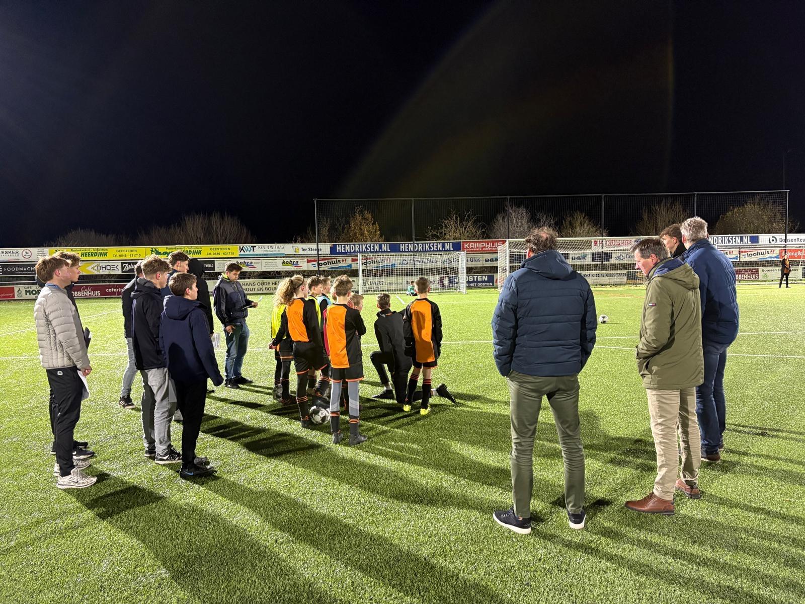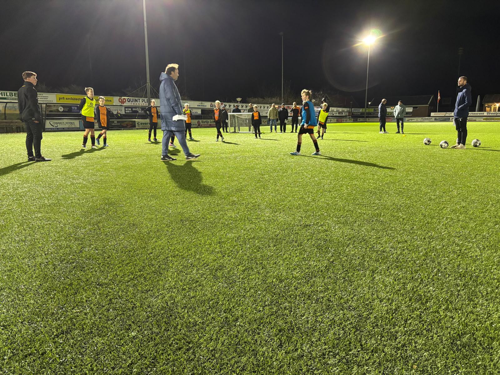 Tygo ter Groot en Twan Mensen verzorgden enkele enerverende trainingsoefeningen en coachten een wedstrijd met de spelers van JO11 en JO13 als oefengroep. Daarvoor en daarna werd hierop in het theoretische gedeelte met goede interactie de oefenstof besproken. Diverse tips en trucs kwamen naar voren, trainersbagage om mee te nemen en te gebruiken.
