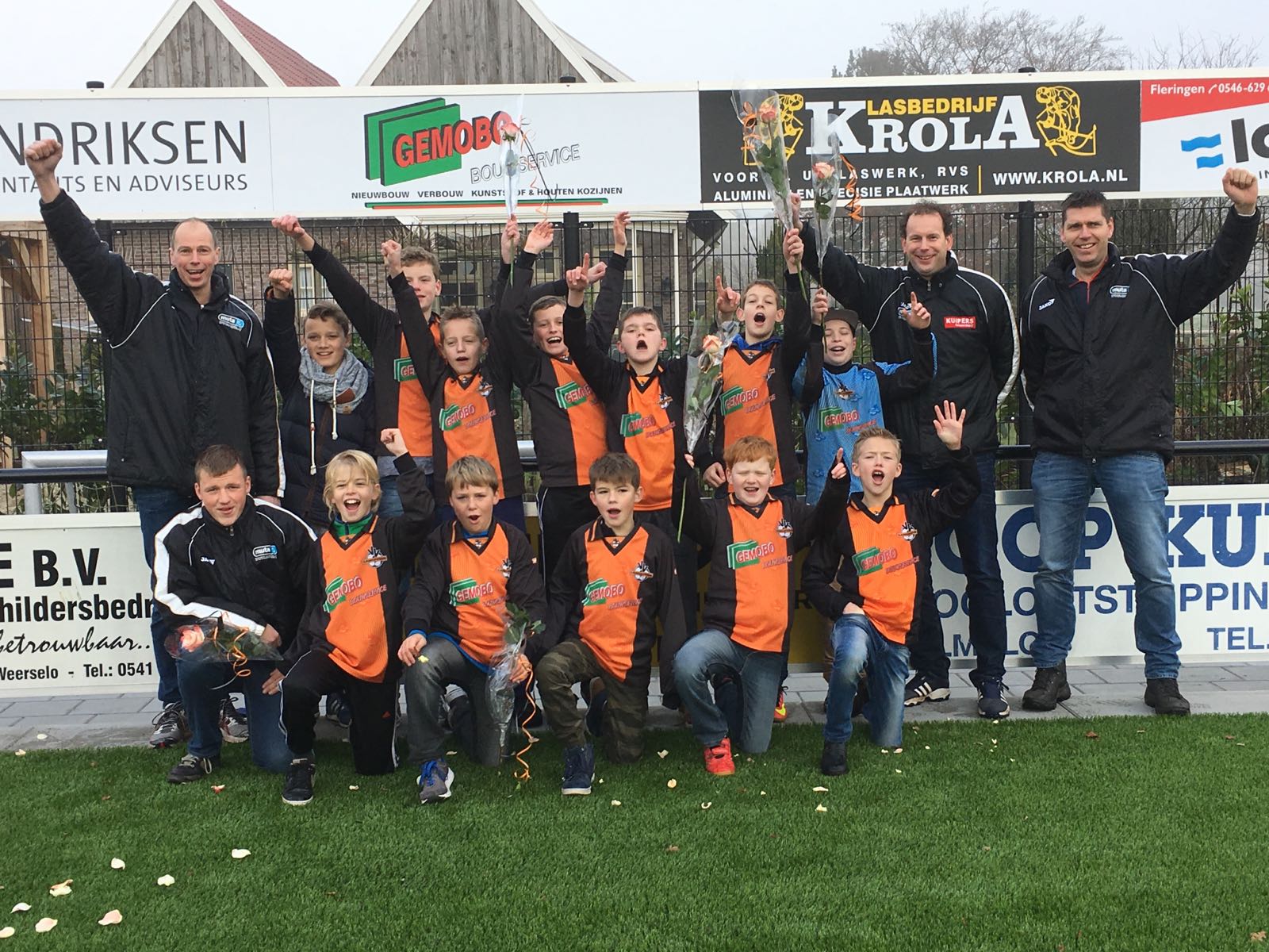 Zaterdag 26 november jl. is Langeveen JO13-2 na een 0-8 overwinning op HHC ongeslagen kampioen geworden. Na de eerste drie á vier wedstrijden werd al snel duidelijk dat de kampioensstrijd zou gaan tussen het team van Langeveen en STEVO JO13-2. Zaterdag 12 november stond eindelijk die topper op het programma. Langeveen had een iets beter uitgangspunt vanwege het veruit betere doelsaldo en had tevens het thuisvoordeel. Al snel in de wedstrijd kwam Langeveen op 1-0 maar gaande de 1e helft werd Stevo steeds sterker en kwam vlak voor rust op een 1-3 voorsprong. - Lees meer