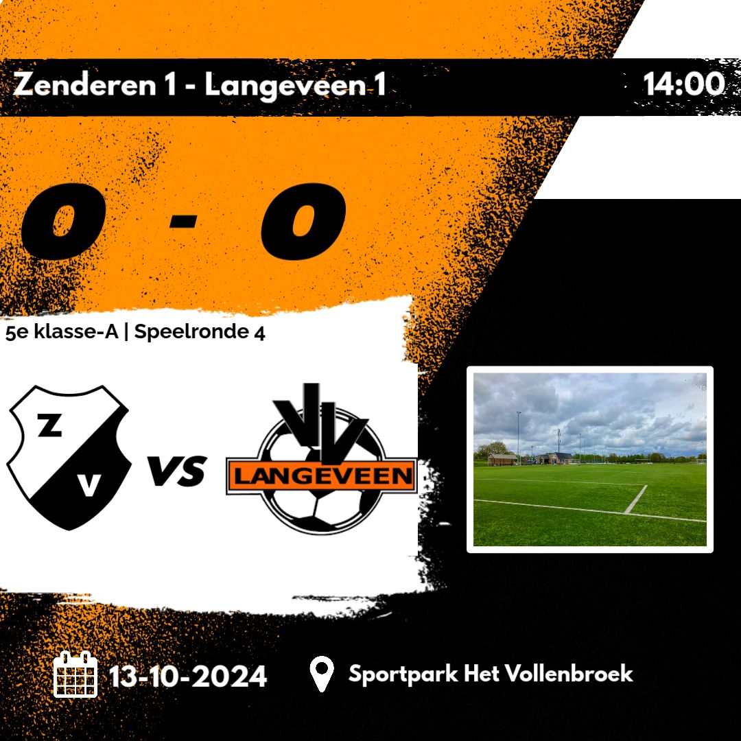 Na de overwinning van vorig weekend mocht Langeveen op zondag 13 oktober aantreden tegen Zenderen op een winderig sportpark Het Vollenbroek. Om 14:00 uur floot scheidsrechter Te Nijenhuis voor de aftrap van speelronde 4.
